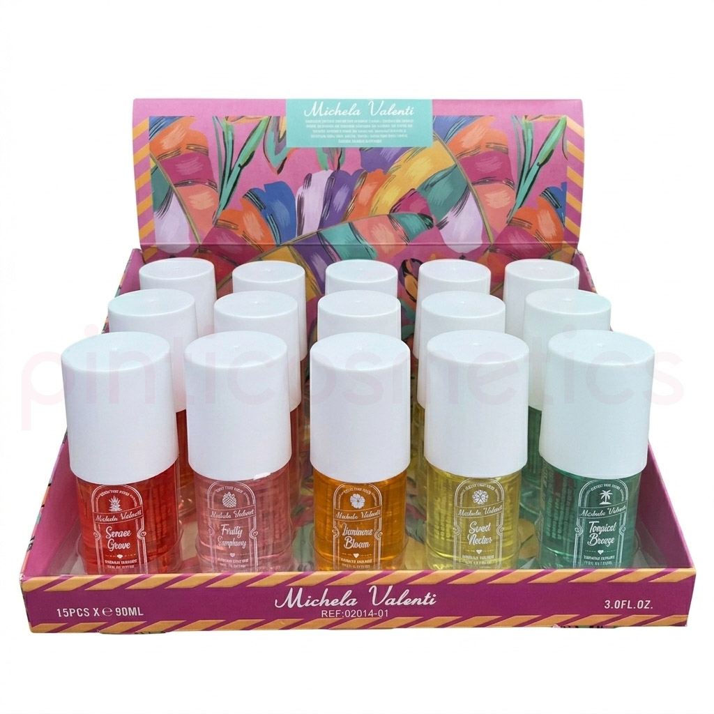 Su textura ligera se desliza suavemente sobre la piel y el cabello, dejando un delicado velo de fragancia ideal para usar todos los días.