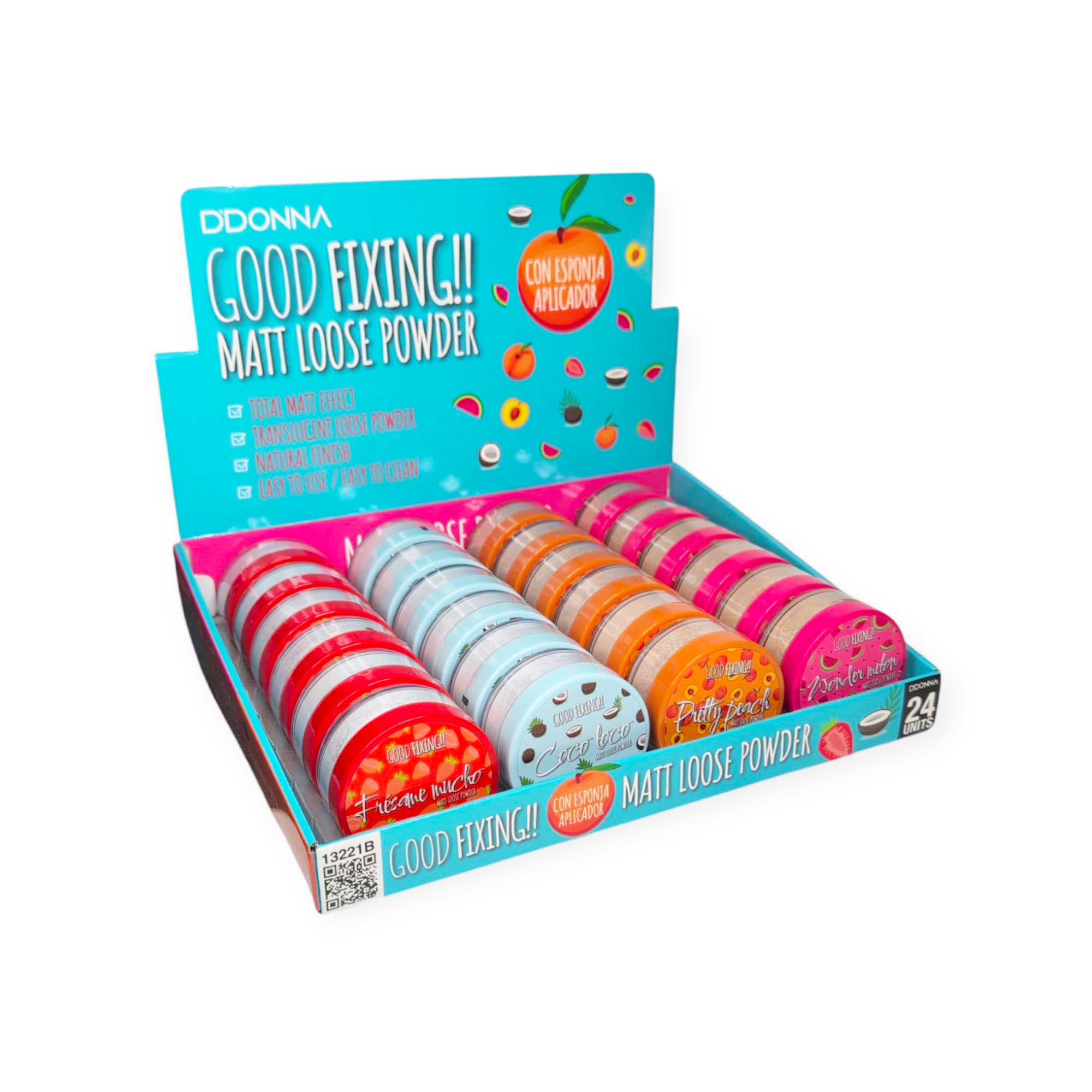 Los Polvos sueltos de acabado mate que aportan un ligero efecto mate en el rostro y dejan el cutis terso y luminoso y con un aroma frutal increíble.