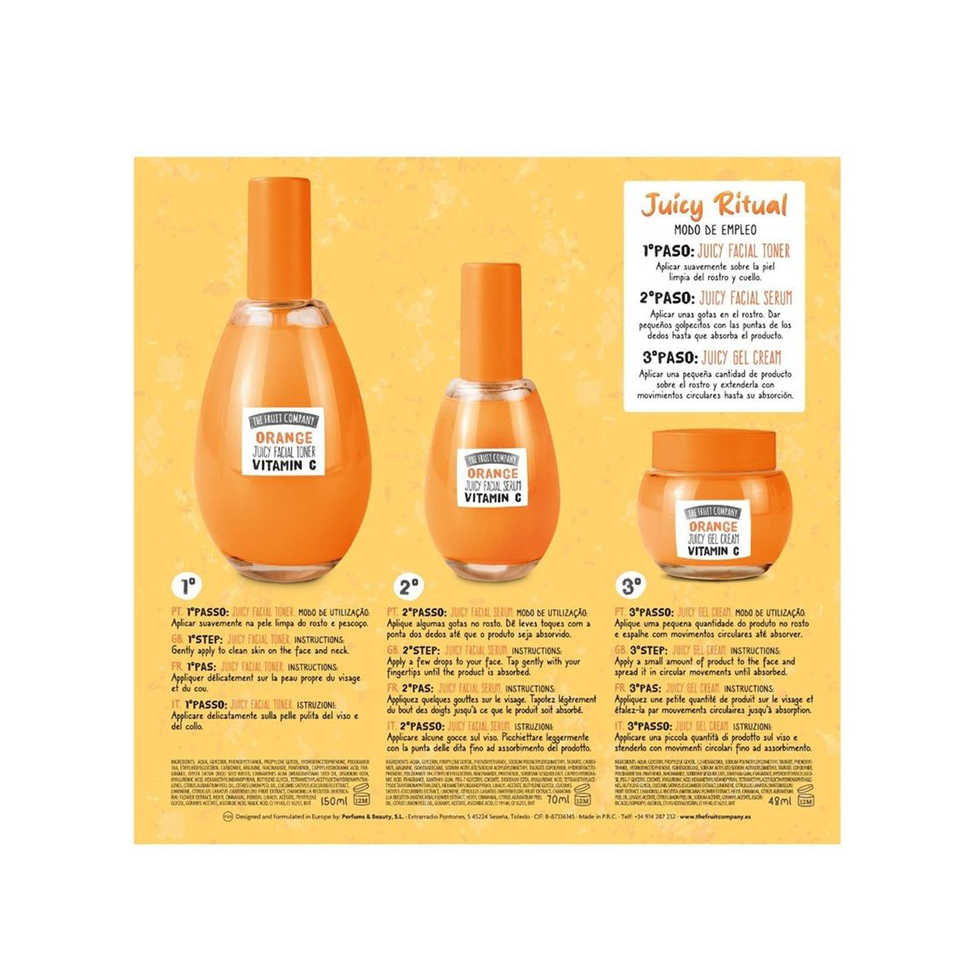 Incluye un tónico 150 ml, sérum 70ml y crema 50ml.