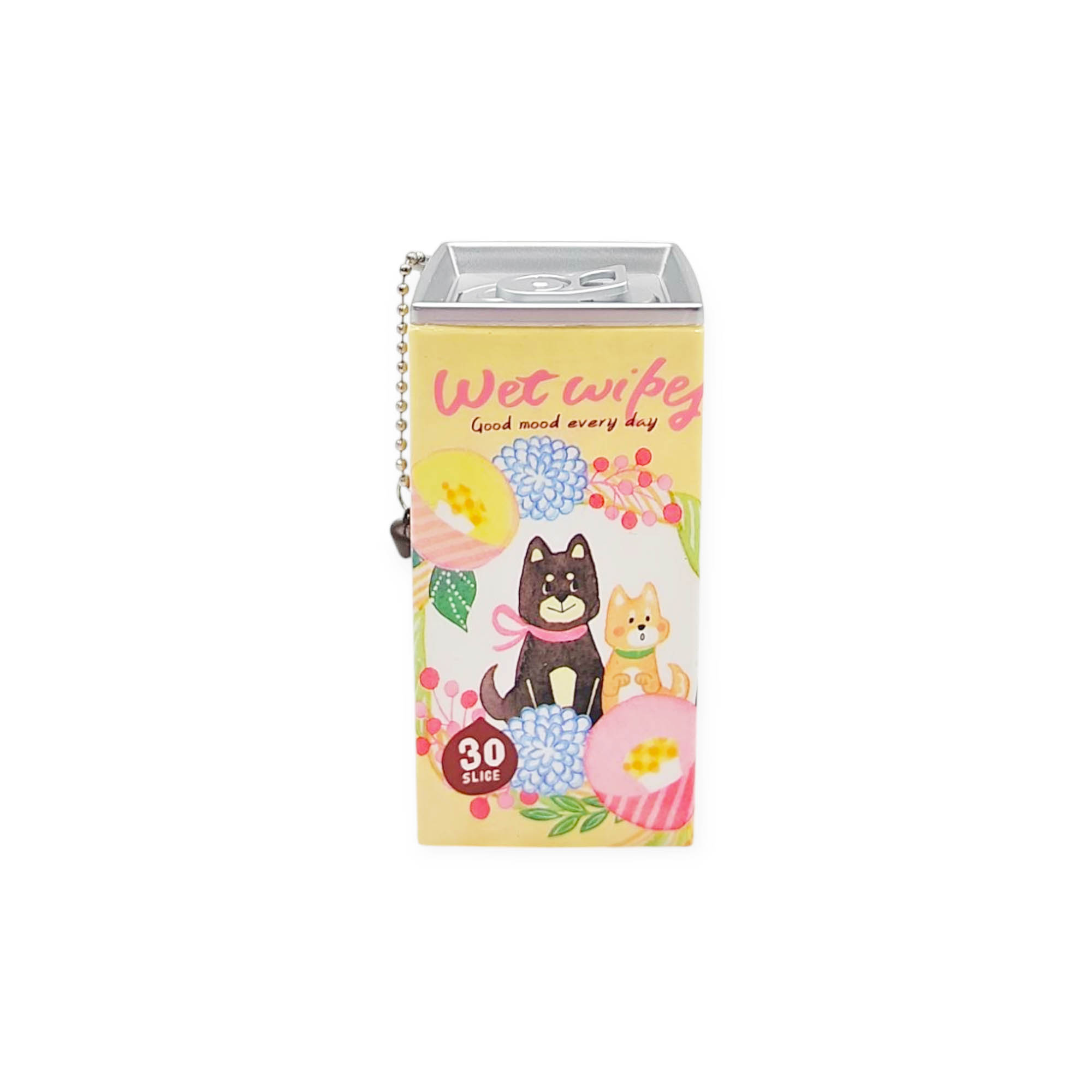 Lata de toallitas húmedas perfumadas, en formato cuadrado, con un bonito y divertido diseño retro de perritos.
