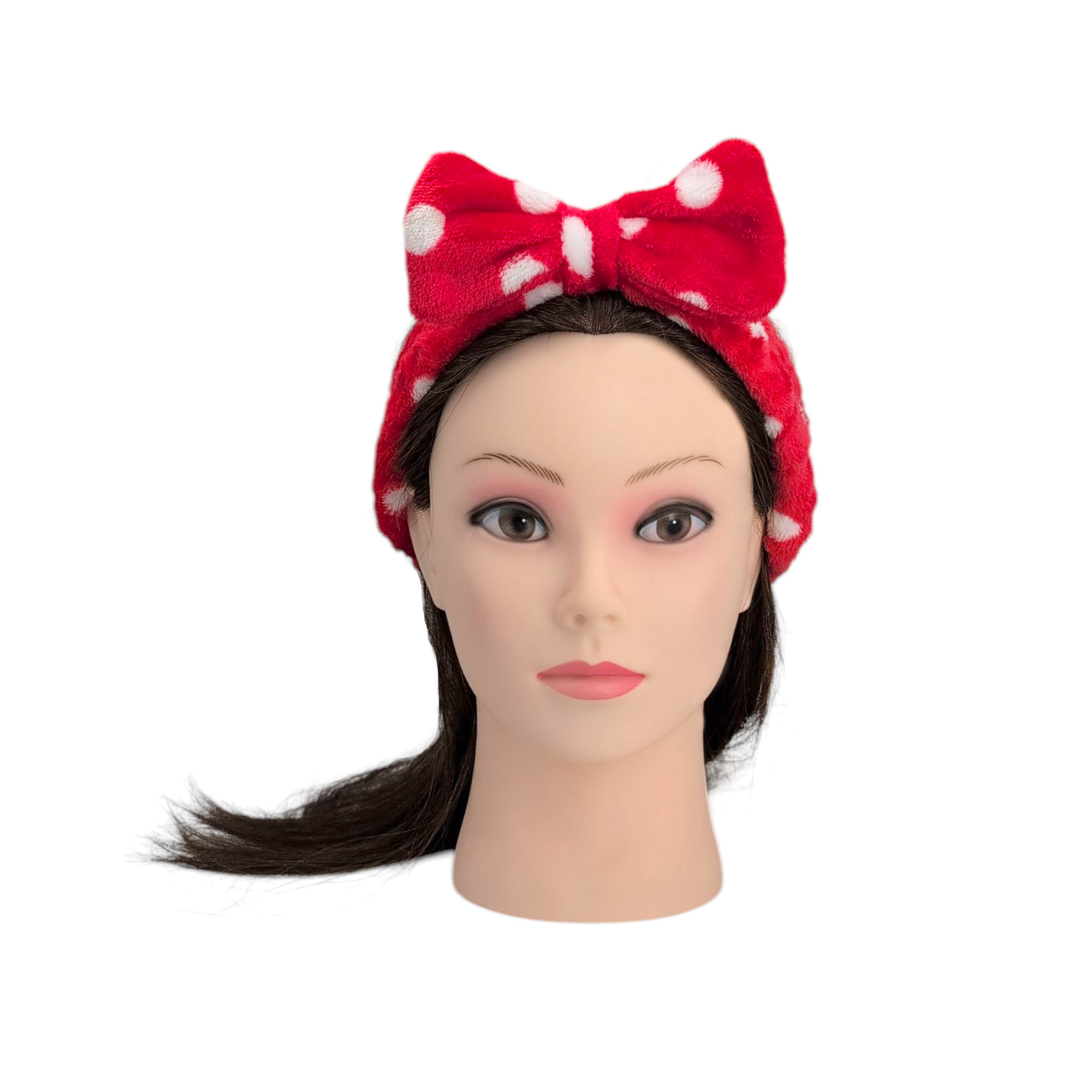 Cinta de pelo- turbante para skincare, muy suave y con diseño de lacito con lunares.